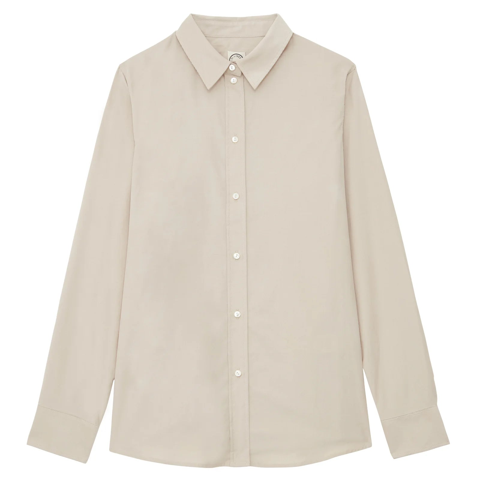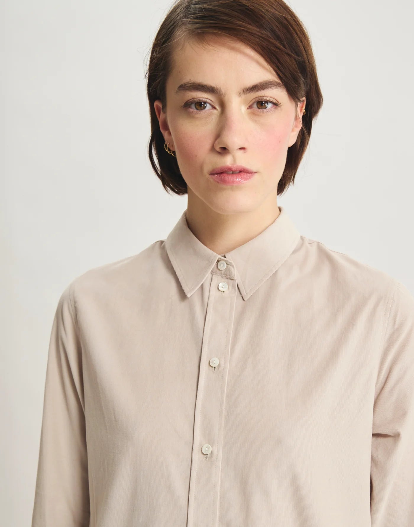 The Martin shirt embodies casual sophistication with its clean lines and timeless collar. Crafted from luxuriously soft beige cotton, it is enhanced by distinctive details such as contrasting piping along the inner button placket. The buttoned cuffs add definition to its silhouette, while its elegant cut suits everything from professional settings to leisurely weekends in Paris. Designed in Paris, this shirt artfully combines understated elegance with refined style.