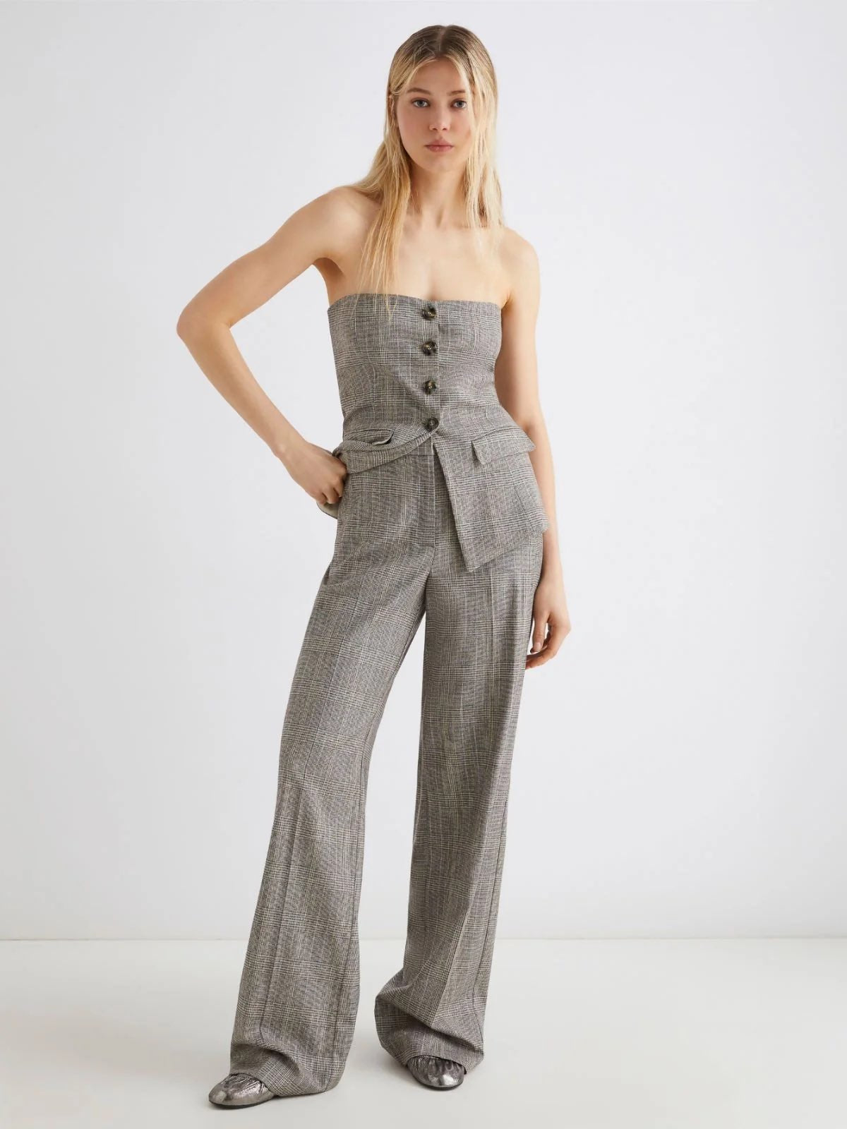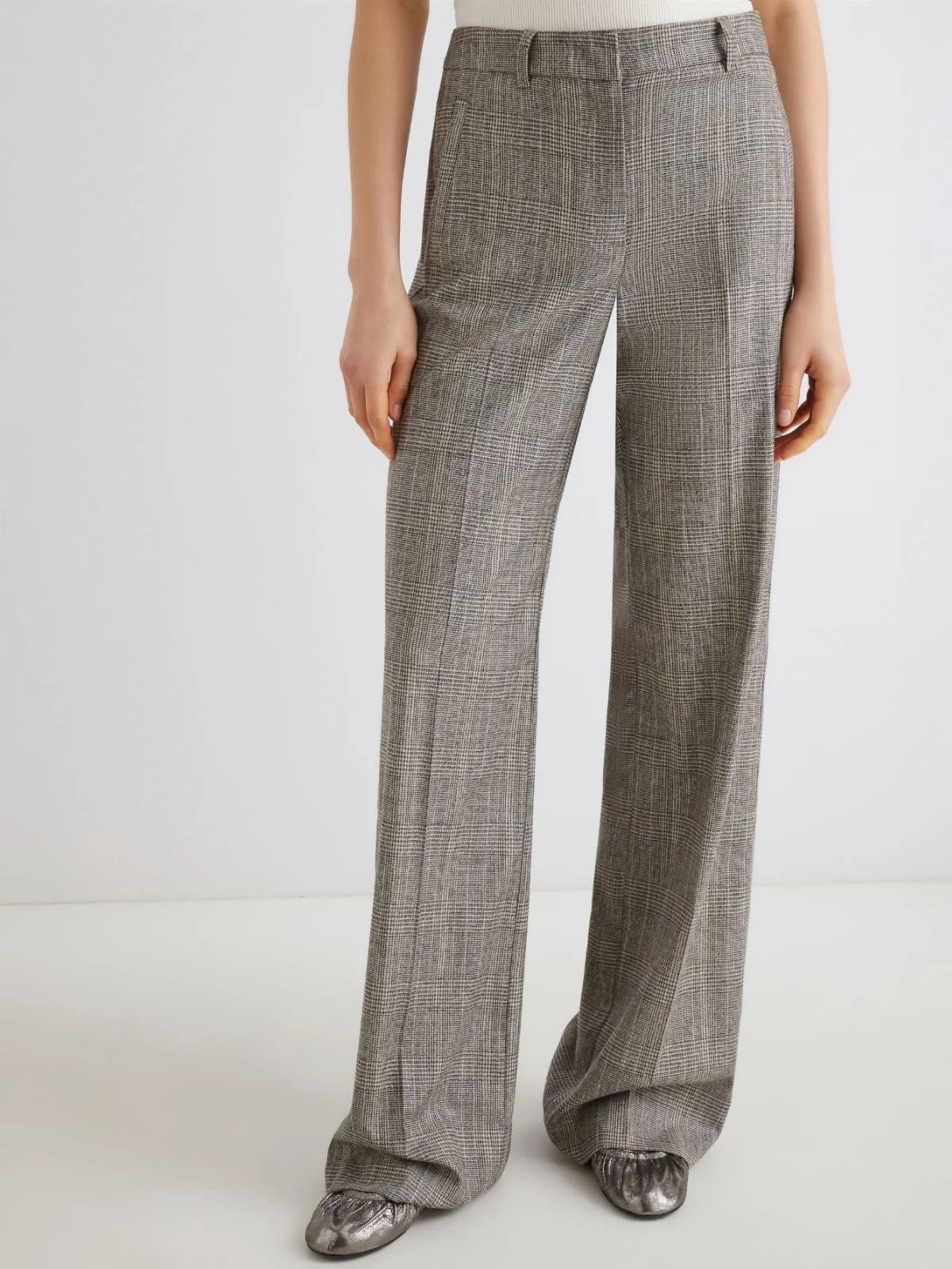 Marella Massimo wide-leg trousers showcase a striking Glen plaid pattern that captures the essence of contemporary winter style. The generous wide-leg silhouette offers both comfort and elegance, creating a flattering drape that works beautifully across various occasions. Layer these versatile trousers with the coordinating corset top for a bold, fashion-forward ensemble, or pair them with a crisp crepe shirt for understated sophistication. The refined tailoring and timeless pattern make them an essential addition to any discerning wardrobe, effortlessly transitioning from professional settings to evening occasions. Crafted with attention to detail, these trousers deliver the polished aesthetic that defines modern luxury dressing.