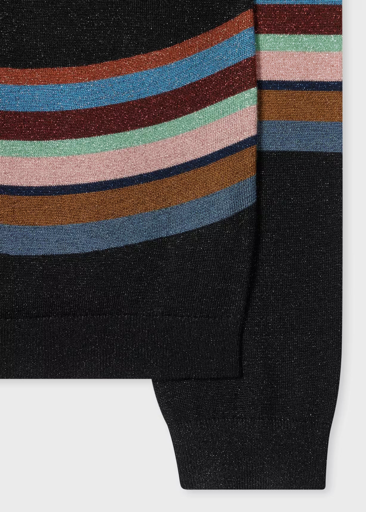 The Paul Smith Black 'Swirl' Cardigan is meticulously crafted from a soft merino wool blend, offering exceptional softness and warmth for year-round comfort.
