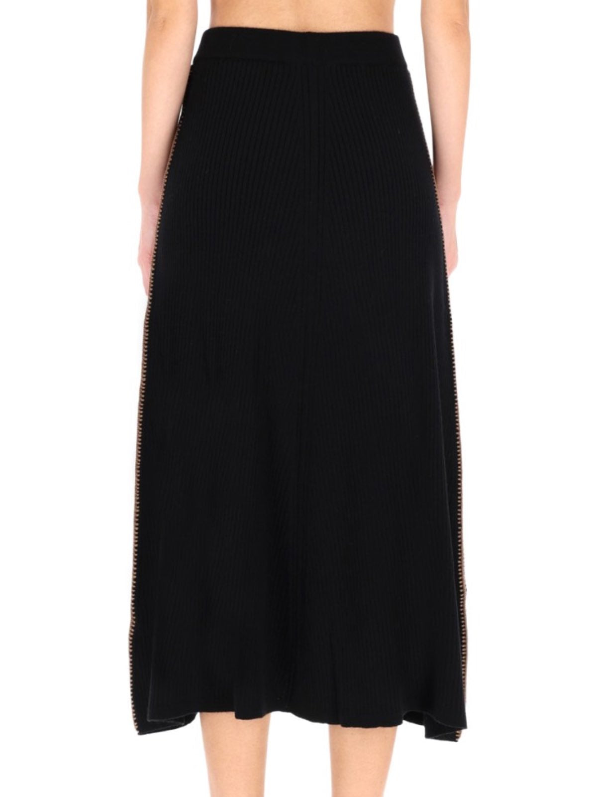 Elevate your wardrobe with this Paul Smith midi skirt, where premium craftsmanship meets everyday versatility. The sumptuous wool-cotton blend drapes beautifully, while distinctive brown blanket stitching at the seams delivers that coveted designer touch. Whether navigating the office or enjoying leisure time, this polished piece transitions effortlessly across your lifestyle. Pair with the coordinating black detachable-collar top for a complete, curated look.
