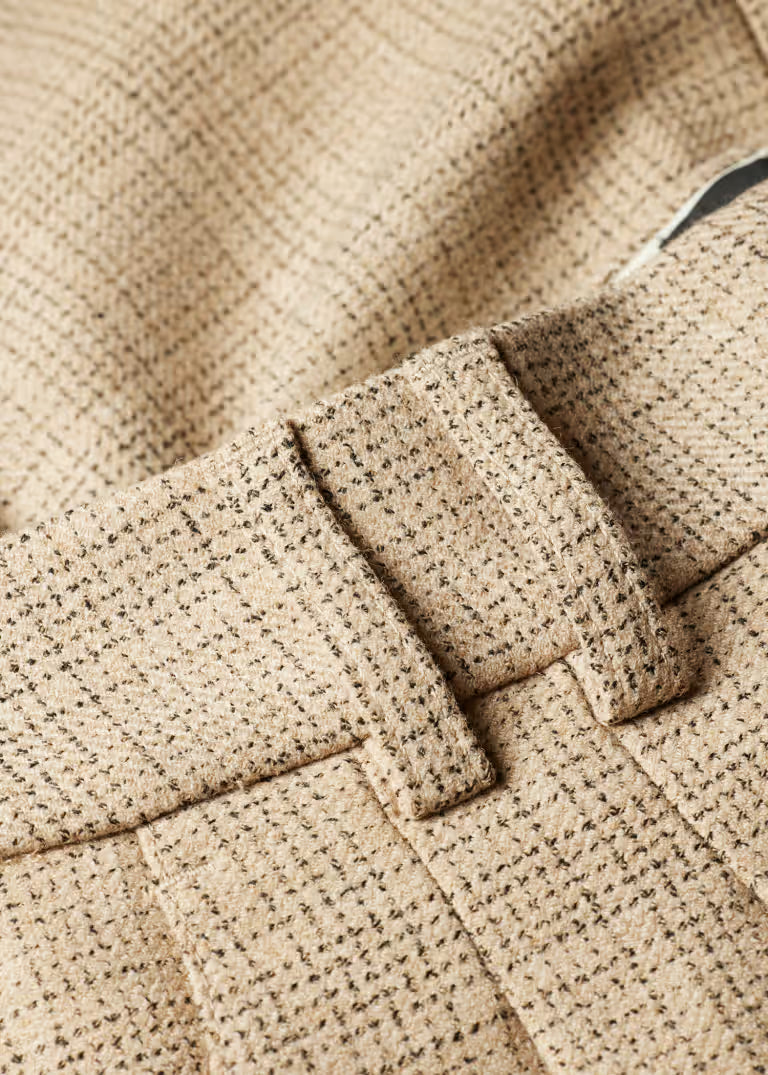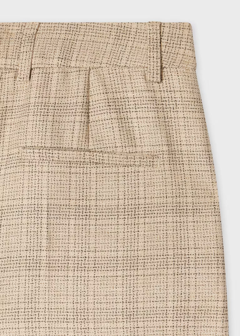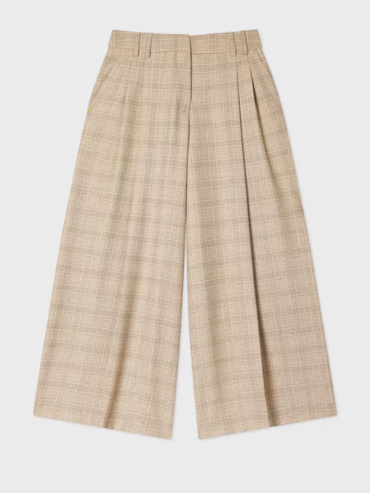Crafted in Portugal from a soft wool-blend, these beige Paul Smith trousers feature an all-over check pattern and a wide-leg silhouette. These neutral trousers effortlessly enhance your wardrobe through the seasons.