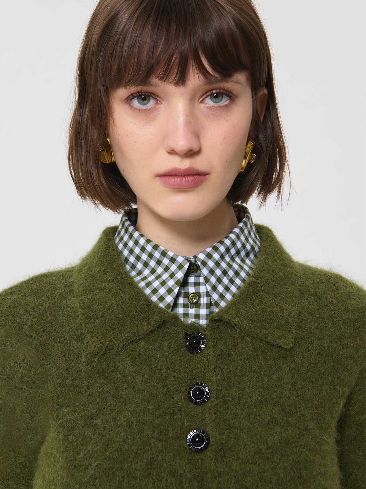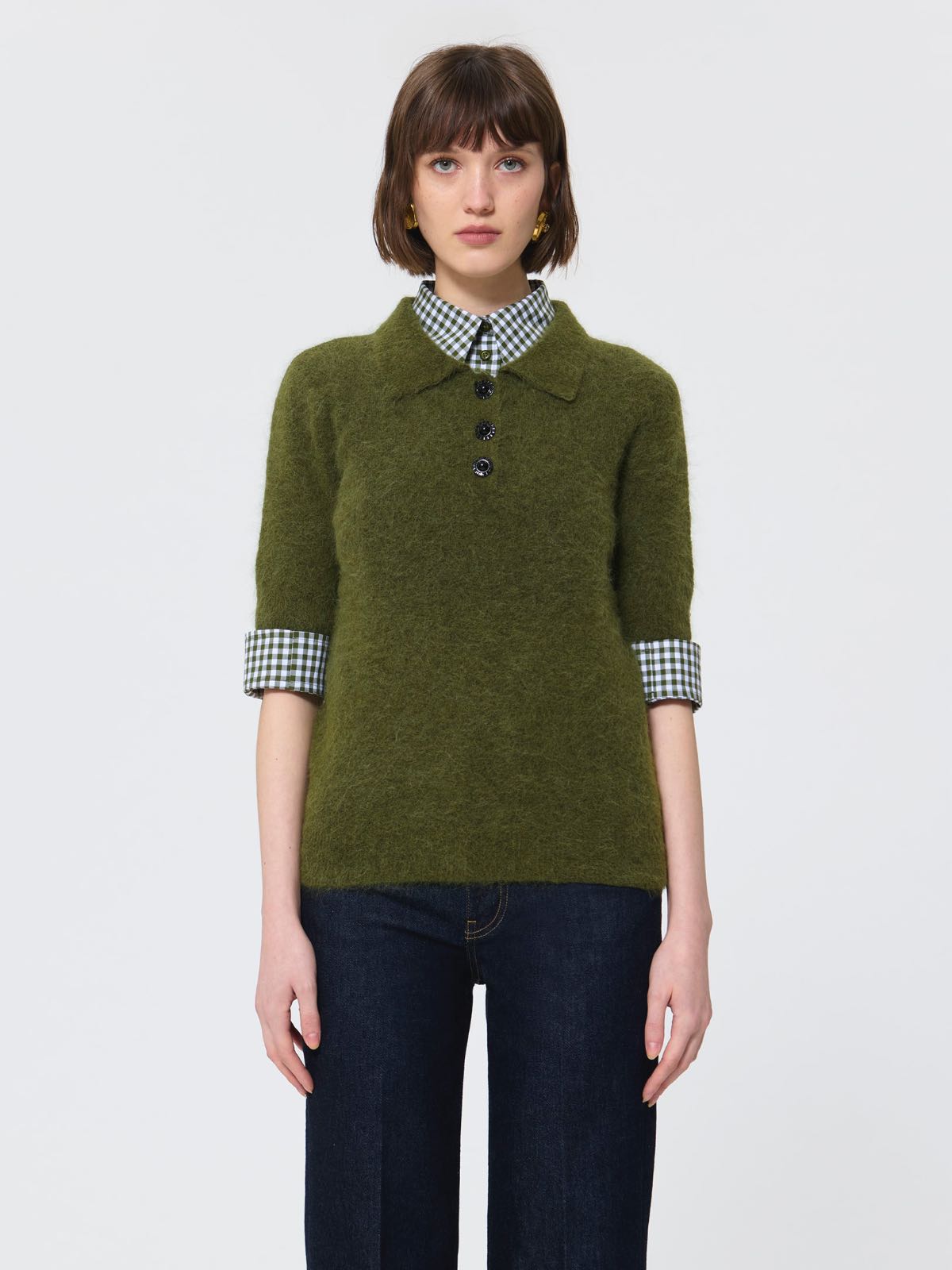 Introducing the Paulino, a refined green sweater from Tara Jarmon crafted from premium alpaca fibres. This sophisticated essential delivers effortless layering versatility, seamlessly complementing your wardrobe staples. A timeless investment in understated elegance.