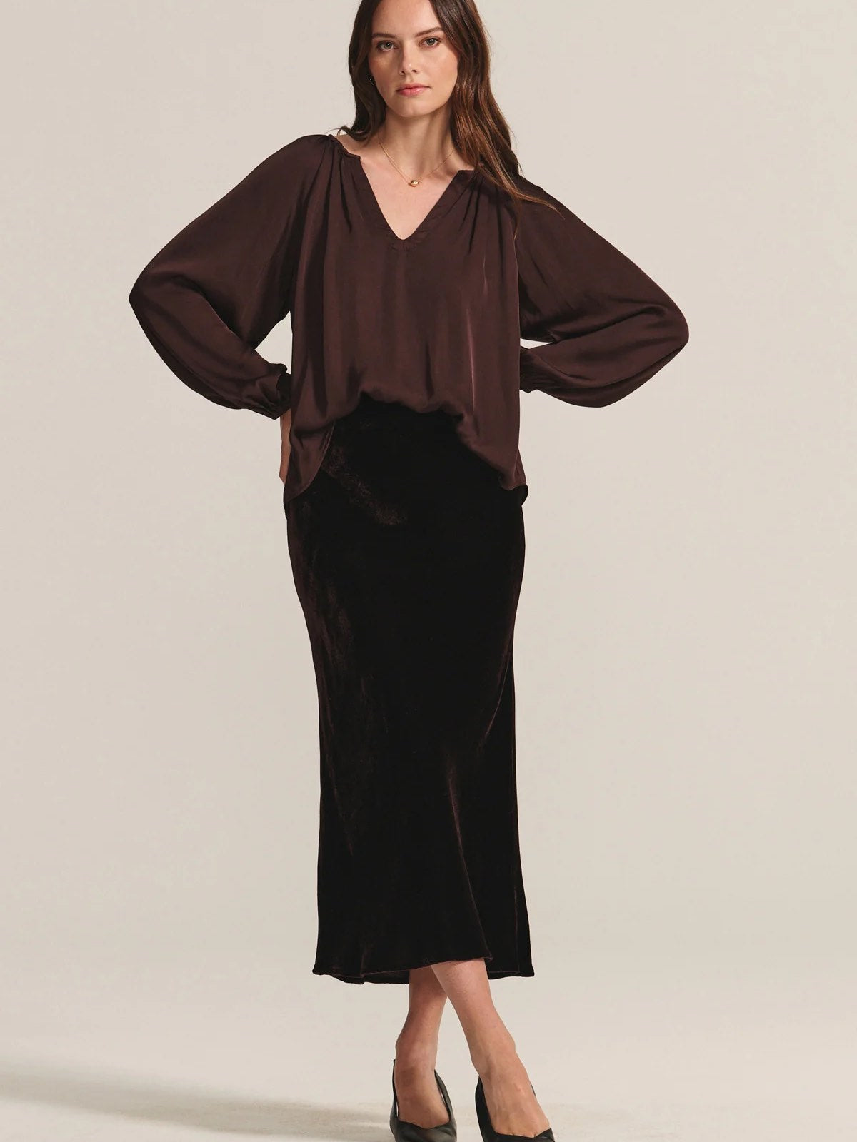 Elevate your wardrobe with the Felicity Velvet Skirt in Mulch, a sophisticated piece that seamlessly transitions from day to evening wear.