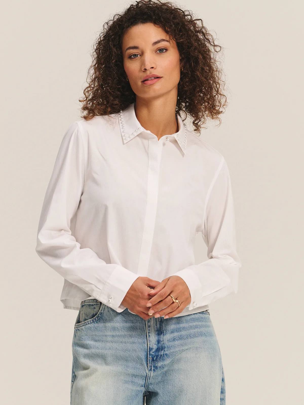 This pristine cotton poplin shirt from Velvet by Graham & Spencer combines timeless tailoring with contemporary embellishment.